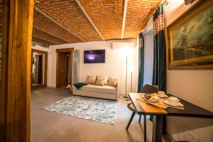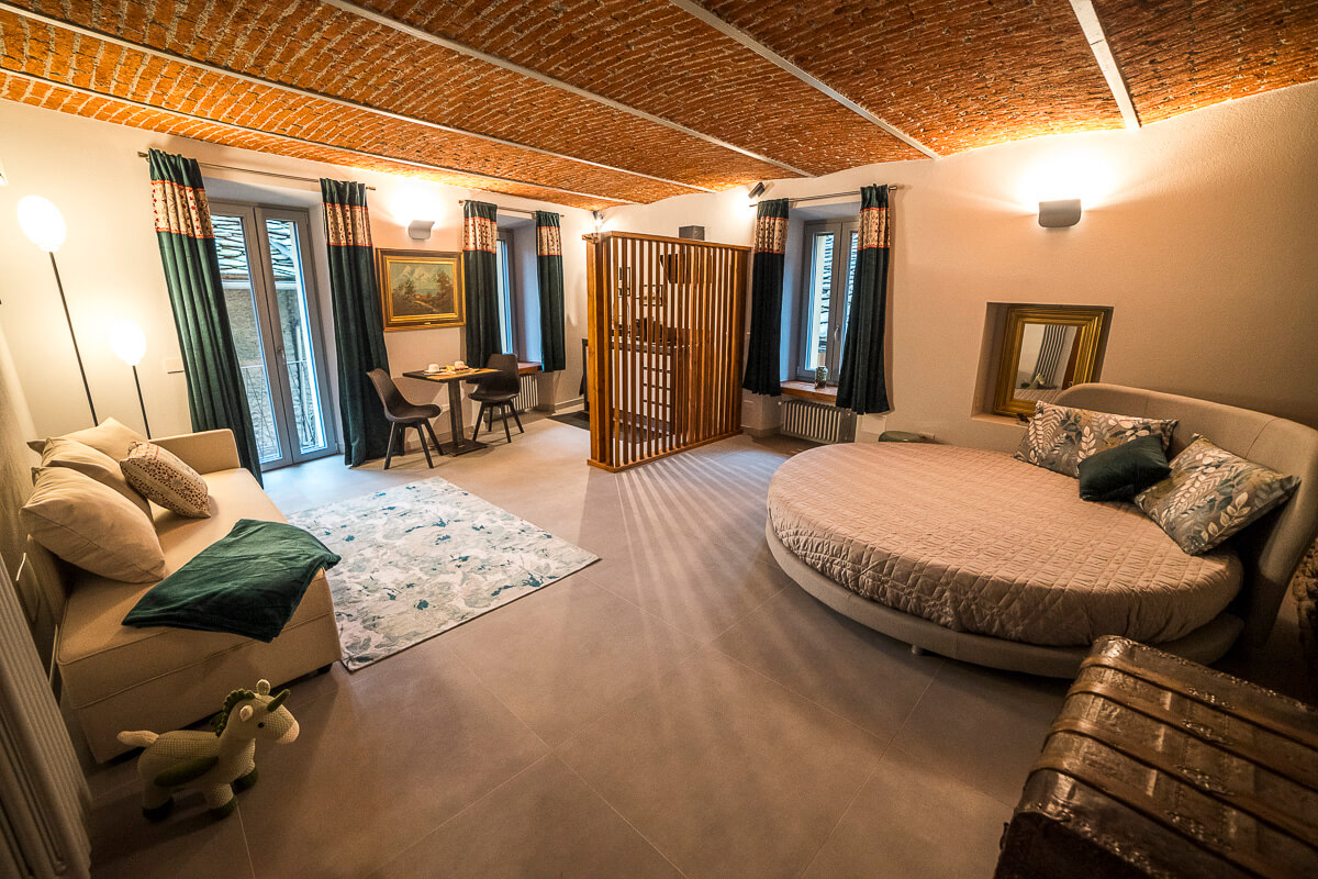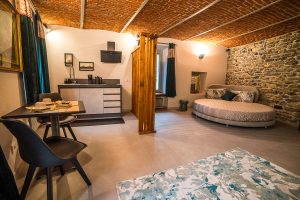 La suite BònBòn è uno spazio ampio e accogliente, ideale per un soggiorno all’insegna del comfort e del relax. Questa suite, dalle dimensioni generose, è il rifugio ideale per chi ama la quiete e la tranquillità. Il soffitto in mattoni, la pietra e il legno la rendono raffinata e calda. Provvista di un balcone e di un angolo cottura può ospitare fino a tre persone, trasformando il divano in un comodo letto singolo. Le suite Chérie e BònBòn sono collegate, per offrirvi il piacere di spazi comunicanti e sempre a portata di mano.