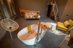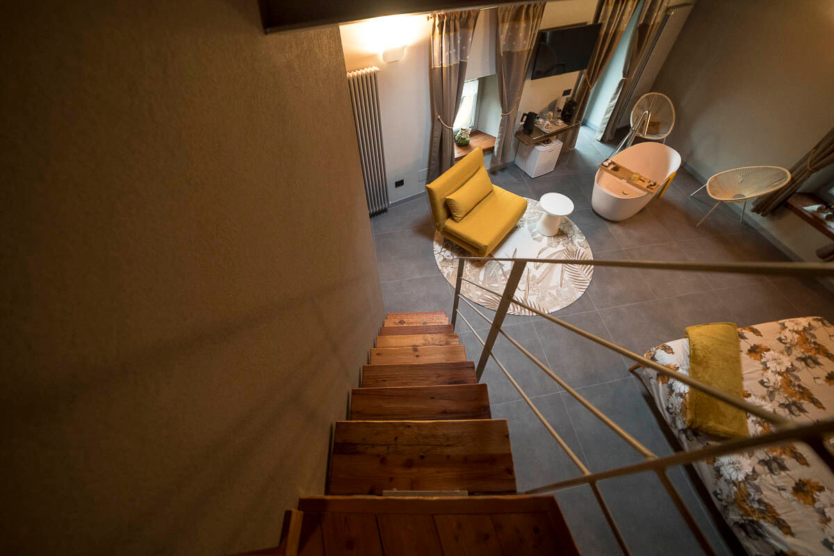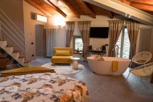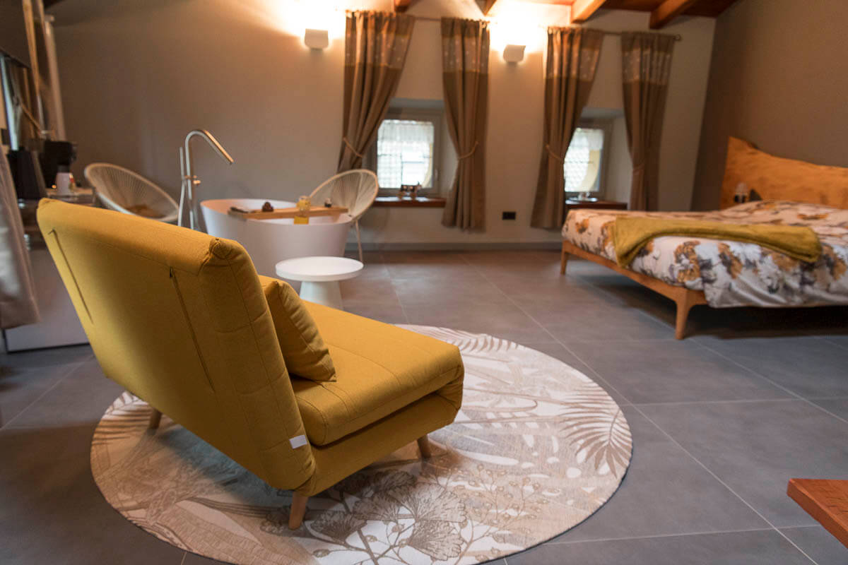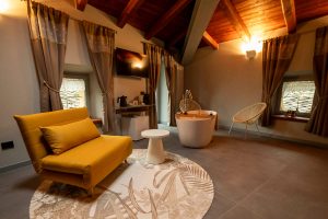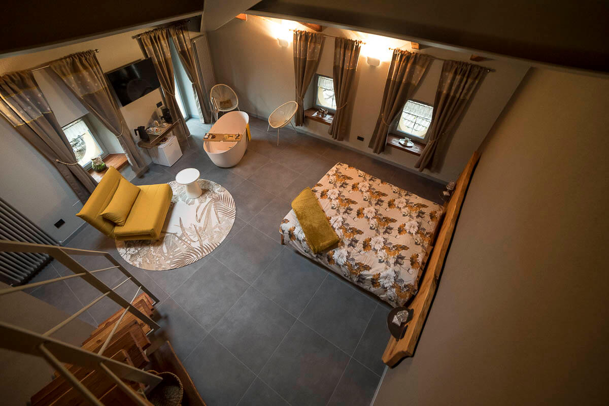 Il gioiello delle nostre stanze, la suite Noisette è simbolo di lusso, modernità e tradizione combinati con rivestimenti in legno, divani di design e materiali pregiati che ne impreziosiscono gli ambienti. E’ dotata di un’ampia vasca, di un salottino delizioso e di un soppalco con un divano trasformabile. Può accogliere fino a 4 persone.